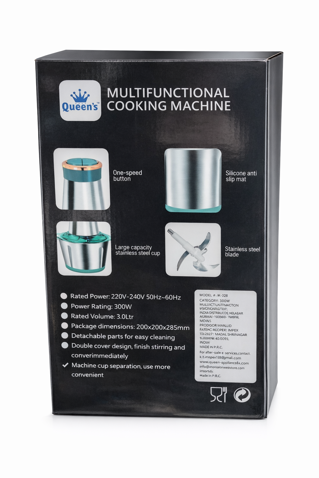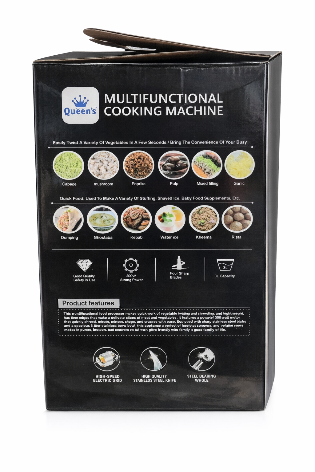 Upgrade your kitchen with the powerful and versatile Queen’s Multifunctional Cooking Machine, designed to make everyday food preparation faster, easier, and more efficient. Built with a durable stainless steel body and a large 3-liter mixing container, this electric food processor is perfect for chopping, shredding, grinding, and preparing ingredients in seconds.